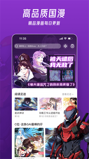 同时在这里大家可以随时随地在线搜索阅读恋爱、校园、热血、恐怖、穿越、玄幻、古风等多种类型的精彩漫画,总之这里没有找不到的漫画,只要你想不到的精彩内容,可轻松满足各种不同群体的阅读需求,是广大漫迷们的必备app。